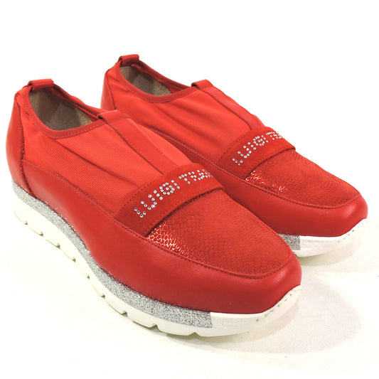 LUIGI TRAINI 🇮🇹 WOMEN'S RED LEATHER COMFORT SUMMER FLAT SNEAKERS