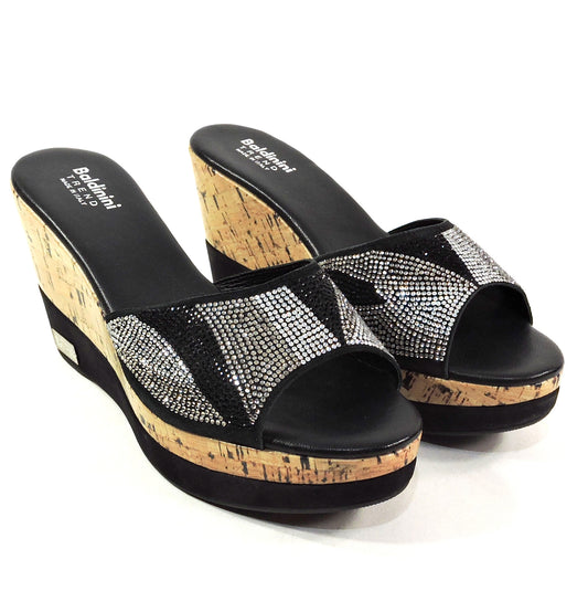 BALDININI 🇮🇹 WOMEN'S BLACK SUEDE COMFORT SUMMER WEDGE MULES 41 EU