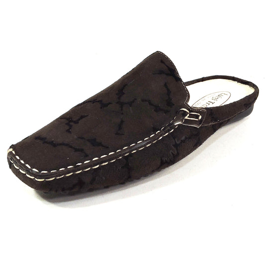 LUIGI TRAINI 🇮🇹 WOMEN'S BROWN SOFT SUEDE COMFORT FLAT SUMMER MULES