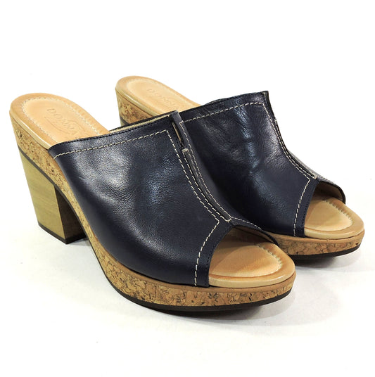 DONNA SOFT 🇮🇹 WOMEN'S NAVY BLUE SOFT LEATHER COMFORT HEELED SUMMER MULES