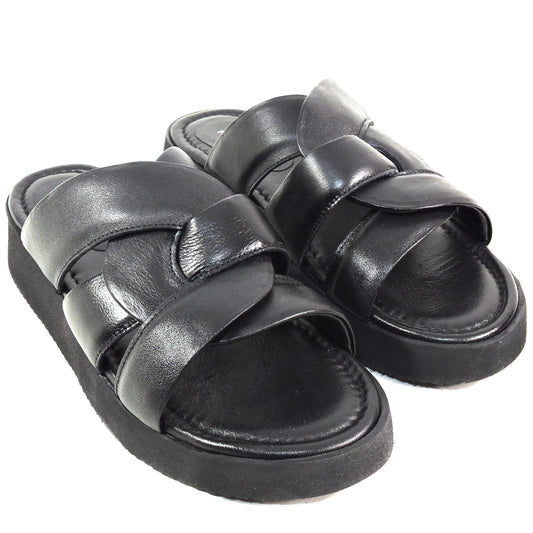 PAOLA FABIANI 🇮🇹 WOMEN'S BLACK LEATHER COMFORT FLAT PLATFORM MULES
