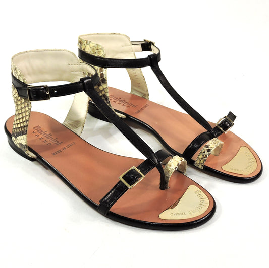 BALDININI 🇮🇹 WOMEN'S SOFT PYTHON LEATHER COMFORT FLAT SUMMER SANDALS