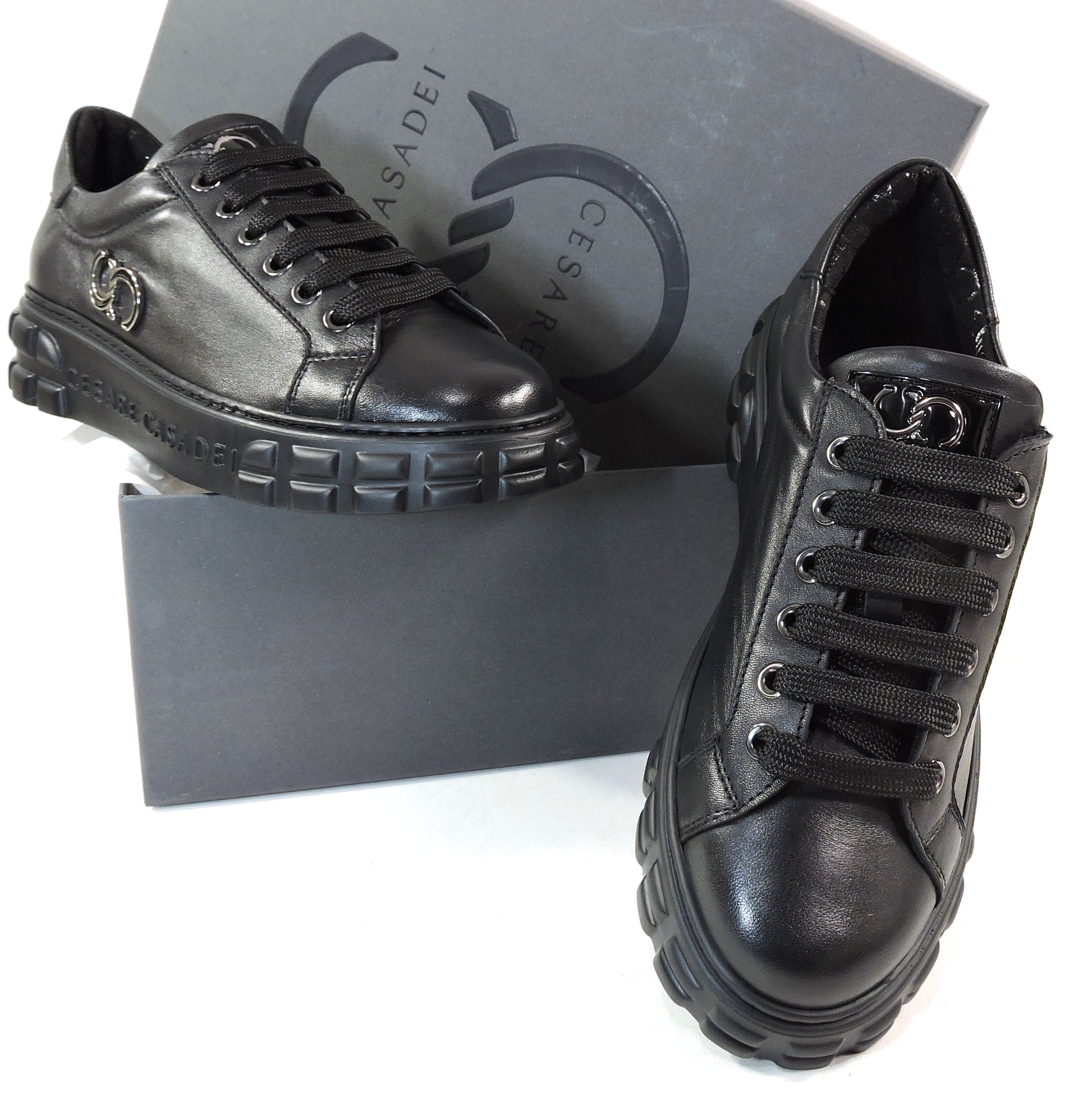 CASADEI 🇮🇹 WOMEN"S BLACK SOFT LEATHER COMFORT FASHION SNEAKERS