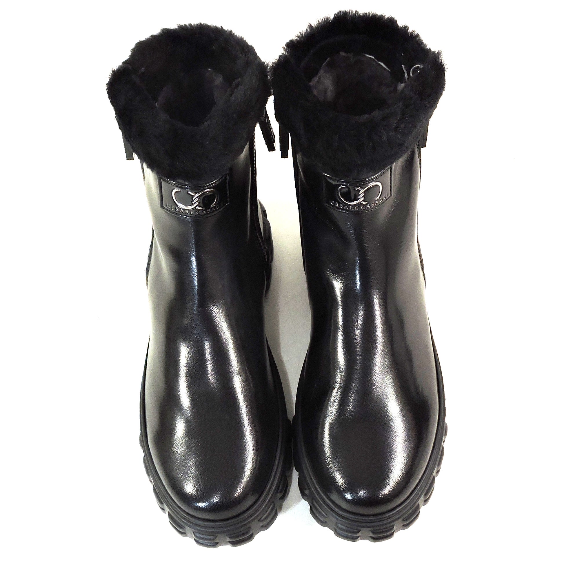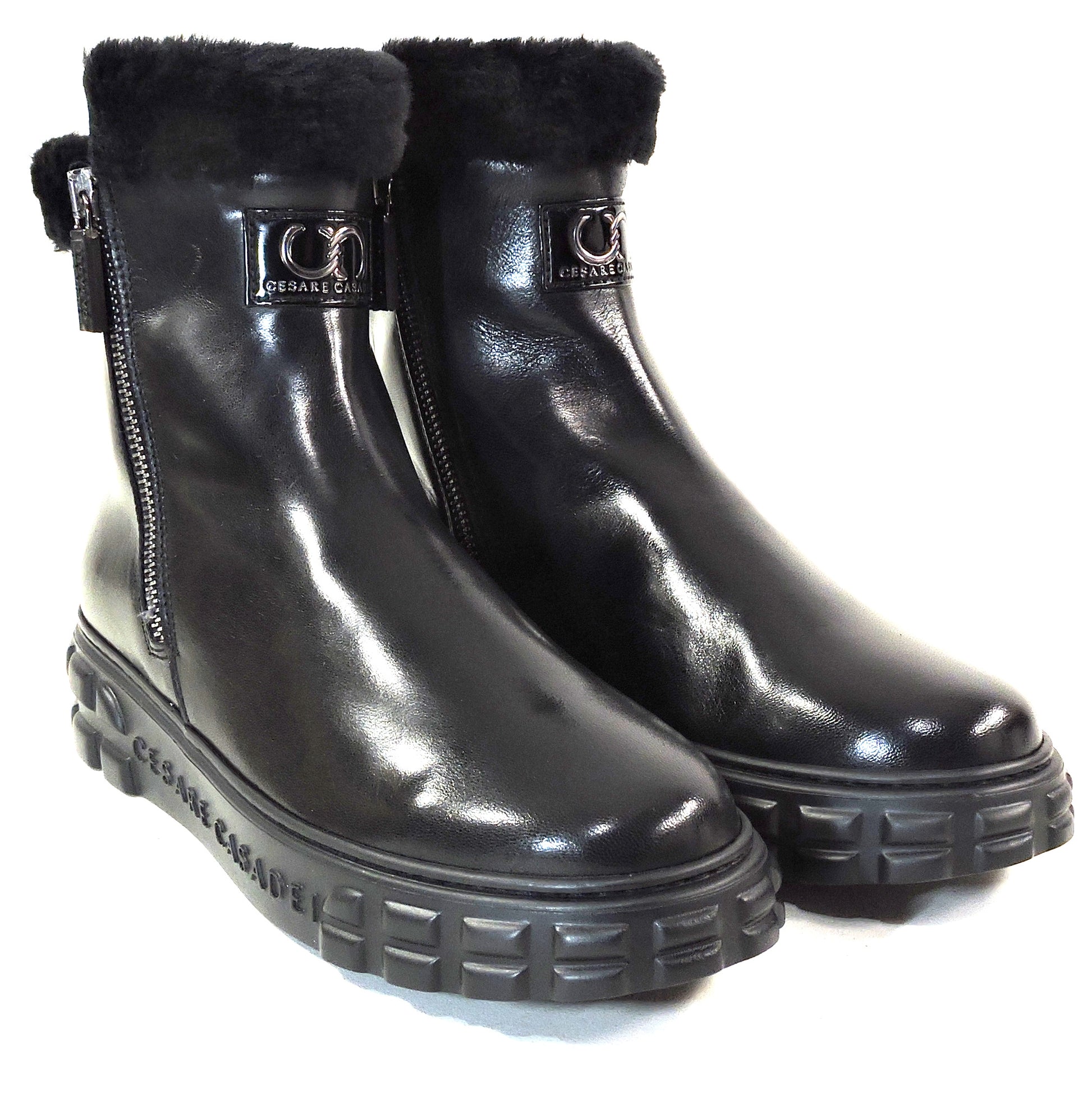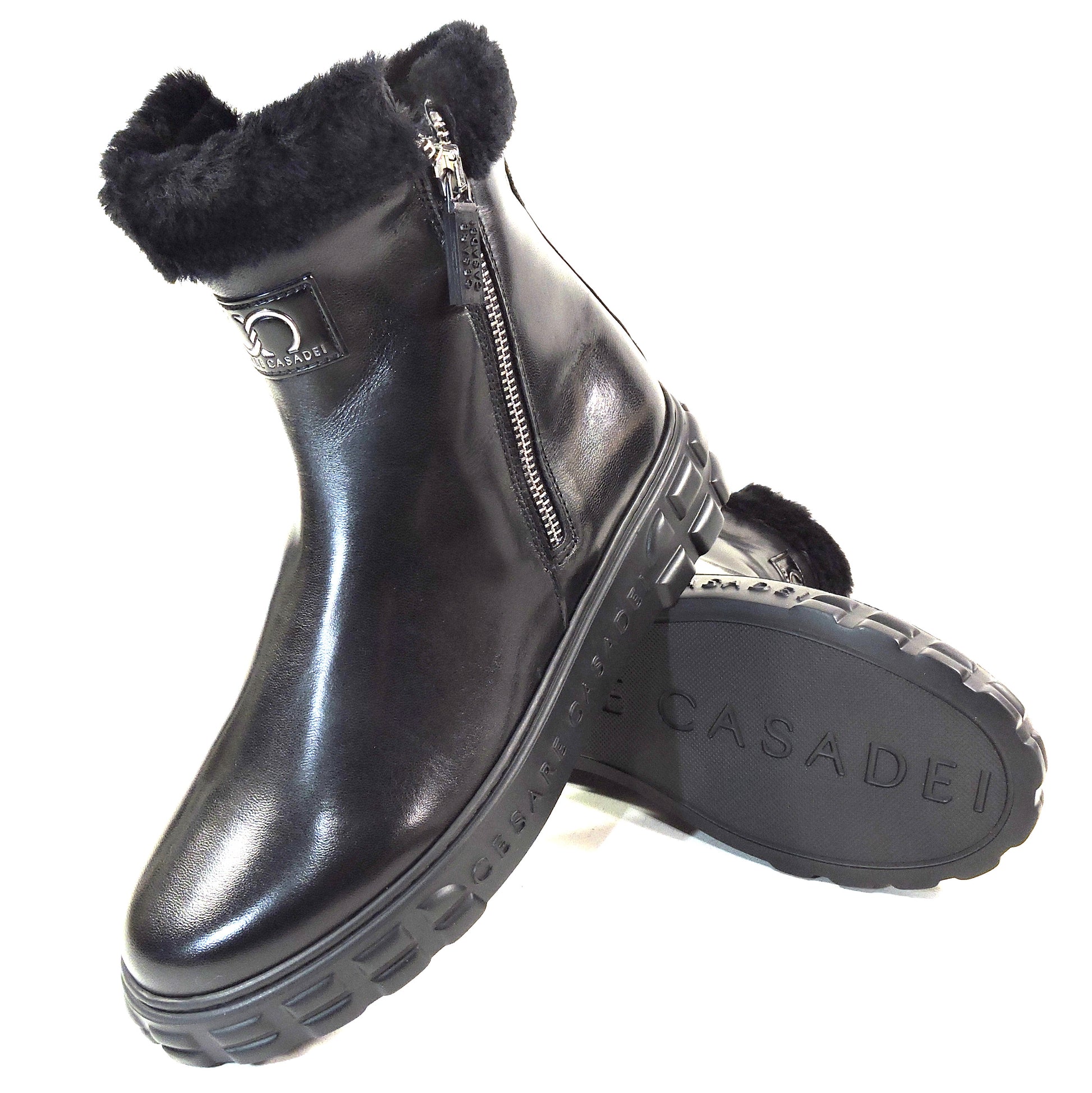 CASADEI 🇮🇹 WOMEN'S BLACK SOFT LEATHER COMFORT FASHION WINTER LAMB FUR BOOTIE