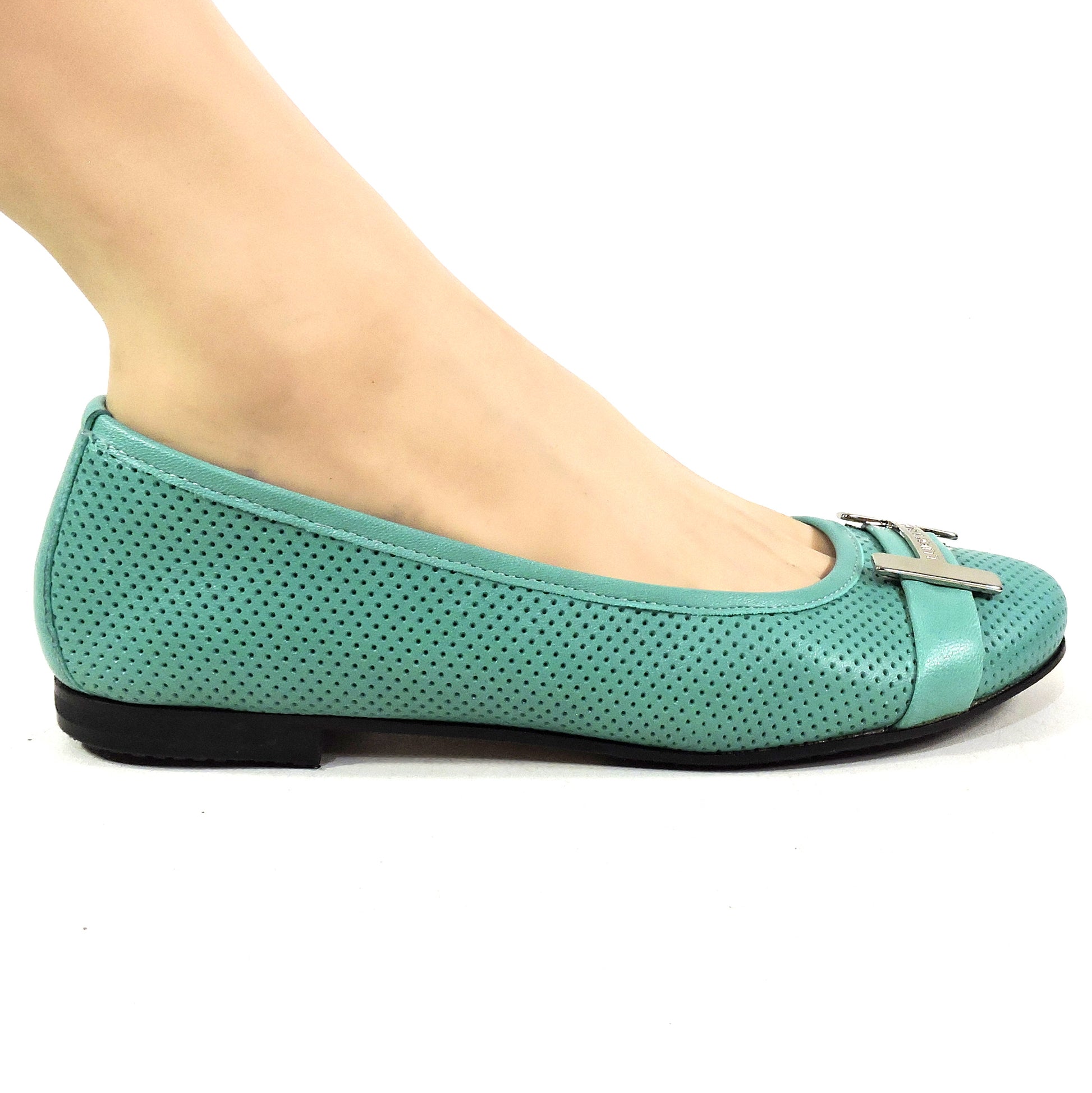 The Luigi Traini women's soft green leather comfort flat loafers are a stylish and practical option for casual occasions. Made in Italy, these slip-on loafers feature a round toe shape and a rubber outsole for added comfort and durability. The leather lining and insole provide a luxurious feel, while the standard shoe width ensures a comfortable fit. The elegant ballet style and solid color make these loafers a versatile choice for the summer season.